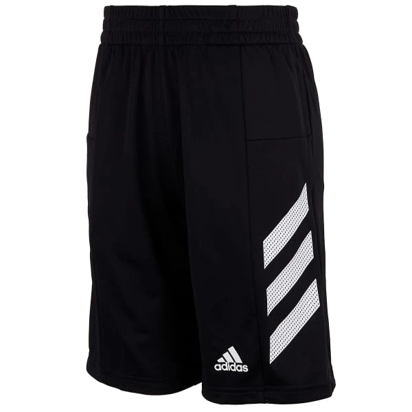 The 3-Stripe Adidas Shorts offer comfort and style for school and practice. These polyester knit shorts feature an elastic waistband with inner drawcord to give him an adjustable fit, two on-seam pockets to store his essentials, and an Adidas logo with 3-Stripes on the left leg, for a sporty, athletic look he will love.