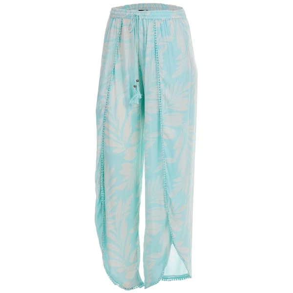 The ANGIE Juniors’ Tropical Print Tie Waist Wide Leg Pants are a relaxed and comfortable option for hanging around at home or a night out with friends.