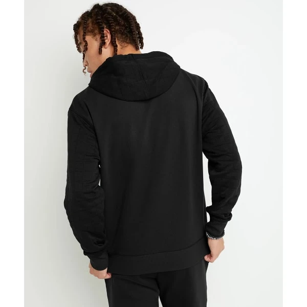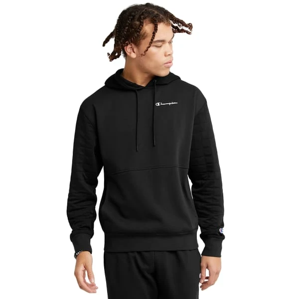 The Quilted Fleece Hoodie from Champion has all the cozy-softness of a handmade quilt plus an elevated twist. This men’s hoodie has the classic features of a solid go-to sweatshirt like a front pouch pocket for storage and a drawstring hoodie for adjustability. The slightly heavier fabric lends to that quilty-plushness for all-day warmth and comfort. Classic Champion script is featured on the chest and again on the left ribbed cuff. This look does not come with fresh baked cookies and it is not your grandma’s quilt—although we’re pretty sure she’d love it too.
