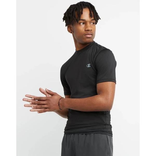 This slim-fit compression t-shirt for men was made for your sweatiest workouts and your heaviest lifts. This stretchy t-shirt is woven with moisture-wicking and anti-odor technology to keep you fresh and dry. Lightweight and luxe fabric hug the body for an athletic fit that feels great on the skin.