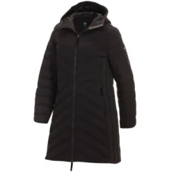 The Eastern Mountain Sports Women’s Cascade Parka is our hybrid down parka. It features high-performing PrimaLoft Silver Ultra Hi-loft 120g insulation in combination with our TechDown Insulation. TechDown provides RDS (Responsible Down Standard) Certified Down insulation with the ability to repel wetness, retain loft and dry quickly. The hood and side panels are filled with Primaloft Silver Ultra Hi-Loft 120g Insulation. The main body is filled with RDS 650FP 80/20 Grey Duck Down. The fabric is water resistant so it will keep you dry in snow and light rain. Our exposed center front zipper features a two way slider making it easy to vent or add mobility. All pockets zip close to keep your personal items safe. The hood and waist are fully adjustable with hidden drawcords. The Cascade is designed to keep you warm no matter how cold it gets.