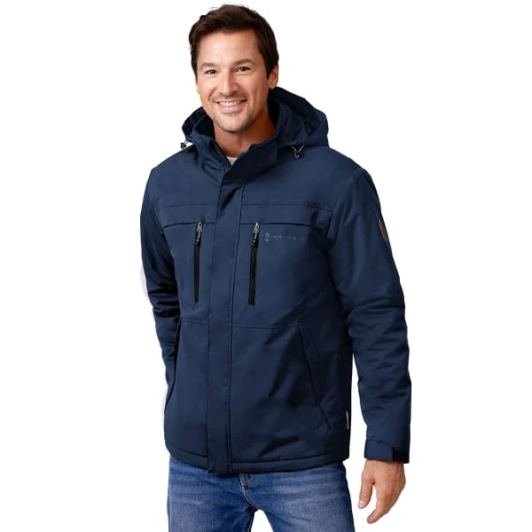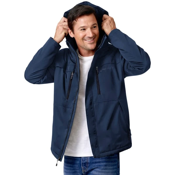 The Free Country Hooded Jacket is great for layering and features an attached hood, chest pockets and hook and loop cuffs.