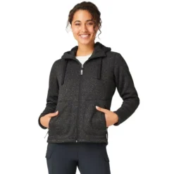 Ultimate comfort lives here! This sweater fleece zip-up has power stretch panels for easy movement and a lightweight, snug fit that is warm and cozy for all-day wear. Bonded to a soft, high pile interior lining and featuring a full zip front and attached hood, you’re ready to take on the day!
