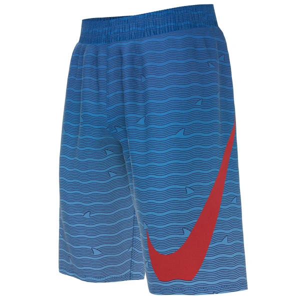 A bold look for the beach or pool, the Boys’ Nike Swim Shark Stripe Breaker 8″ Volley Short is as functional as it is fashionable. These colorful boys’ swim trunks are crafted with a stretch waistband and internal drawcord for adjustable comfort and a built-in mesh brief for a secure and supportive fit. A hook-and-loop welt pocket at the back offers hands-free storage space with a mesh pocket bag for drainage. The large embroidered swoosh adds to the modern sporty appeal of these swimming trunks.