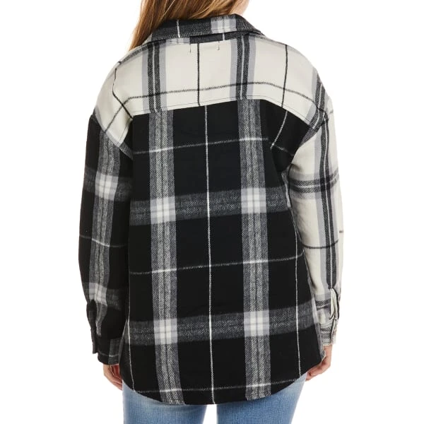 Stay warm and stylish when the weather gets a little brisk with the Oversized Spliced Shacket from No Comment.