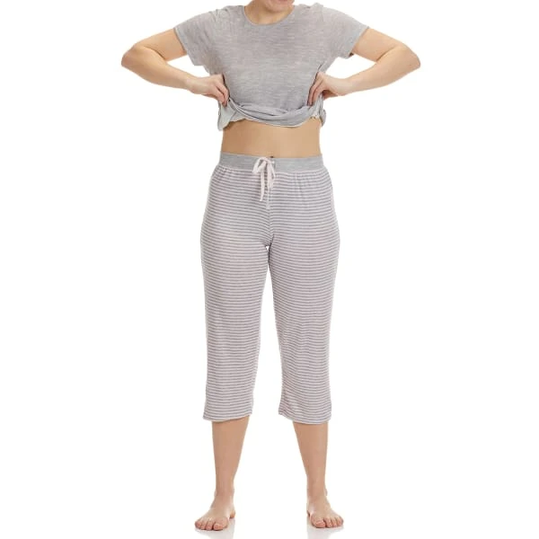 Hit the sheets in comfortable style in the Hacci Capri/top sleepwear set from Rene Rofe.