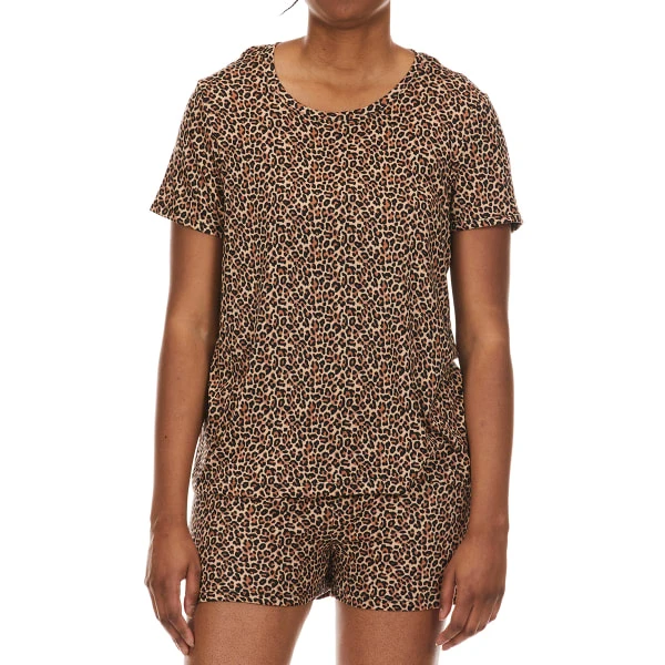 Hit the sheets in comfortable style in the Hacci Shorts/top pajama set from Rene Rofe.