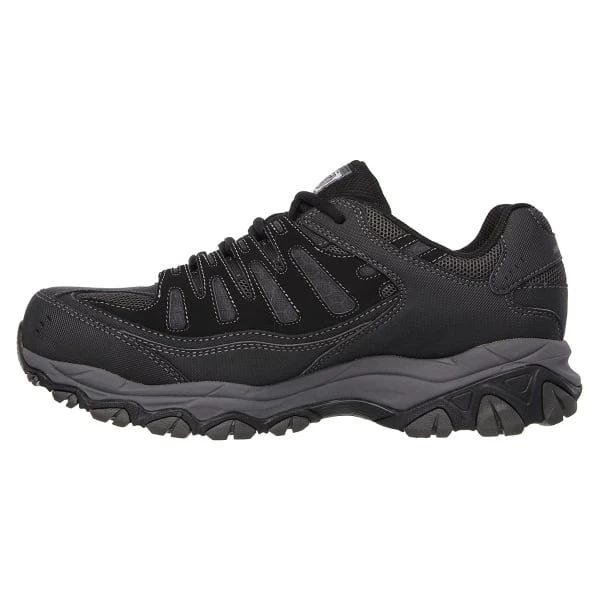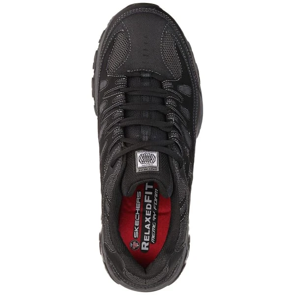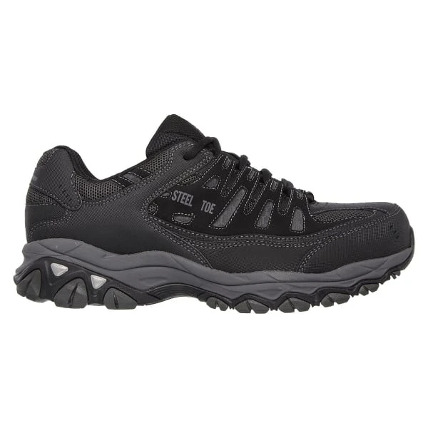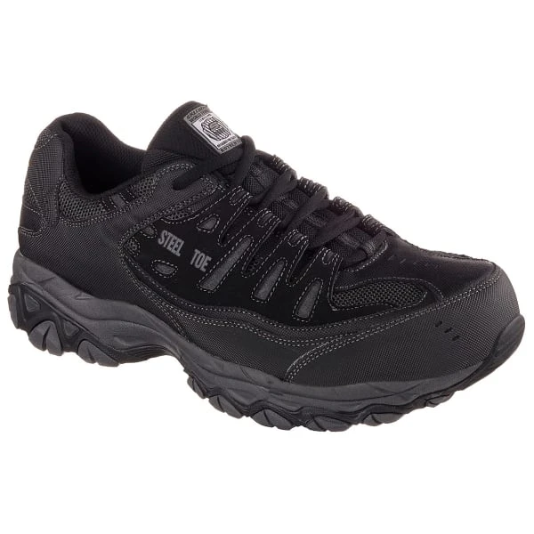 Outsmart every challenge in comfort with the SKECHERS Work Relaxed Fit®: Crankton ST shoe. This lace-up steel toe work sneaker features a durable leather, synthetic, and mesh fabric upper with stitching, overlay accents, and a Memory Foam insole.